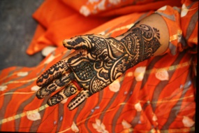 Do malowania dłoni, rąk henną ustawiła się kolejka chętnych. Pamiątka po oryginalnej zabawie karnawałowej;-)