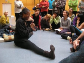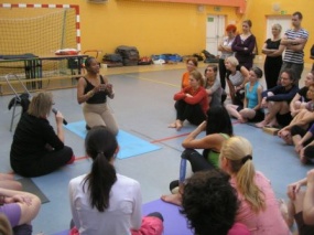 Byłam ciekawa, czy Jaki opowie coś o tym jak pracować z dnem miednicy. Do udziału w warsztacie poza ciekawością poznania nowej nauczycielki, zmotywowała mnie jedna z moich jogicznych studentek, zgłaszająca problem nietrzymania moczu, z którym Jaki sama się borykała.