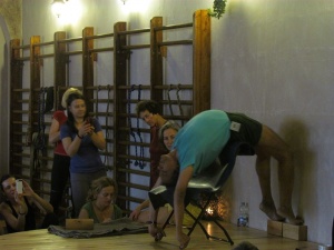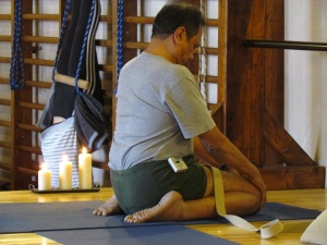 Jednak żeby to nastąpiło nasz kręgosłup musi przejść przez proces "ukrzyżowania" - długich wygięć do tyłu, które praktykowaliśmy przez cały warsztat, a które bardzo intensywnie go regenerują. Viparitadandasana, catuśpadasana i urdhvadhanurasana stały się naszym "krzyżem" przez te cztery dni. Sam ksiądz Pereira śmieje się,że jego kręgosłup w wieku 72 lat, po ponad czterdziestoletniej praktyce jogi jest dużo młodszy i elastyczniejszy niż w latach młodości. Wszystko więc przed nami.