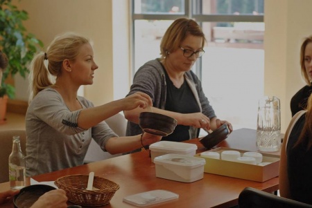 W niedzielę, po warsztacie przygotowującym do 108 Powitań Słońca, miały miejsce warsztaty tworzenia kosmetyków naturalnych, prowadzonych przez ekspertów z firmy Organique - głównego sponsora imprezy. Można było nie tylko poznać różne rodzaje i właściwości glinek, ale także przygotować sobie własną maseczkę - dobrać jej składniki indywidualnie dla swojego rodzaju skóry. Było wyjątkowo aromatycznie:-)