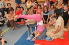 Sharat nie chciał, abyśmy wchodzili bardzo głęboko w pozycję, na maksimum swoich możliwości. Chciał, abyśmy wypracowali perfekcyjny ruch w małym zakresie pozycji. To było na początku trudne, bo dla mnie to było to zderzenie z inny podejściem. Umysł był trochę skołowany;-) Ale na drugi dzień zaczęłam się otwierać. Zastosowałam to, co podkreślał kilka razy: zapomnij o tym, że ćwiczyłaś, że ćwiczysz, otwórz się tak, jakbyś była dzieckiem. Zrobiłam tak i jestem bardzo zadowolona.