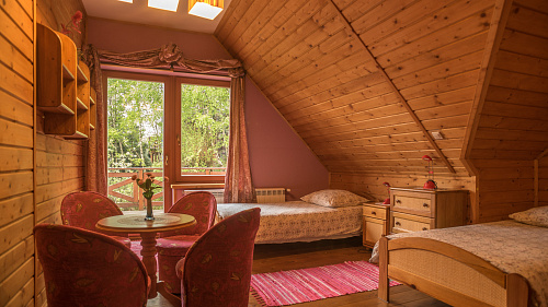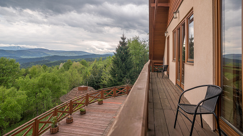 - Rzeczywiście. Niedaleko mojego domu, na rozległej działce, powstała Mandala. Przytulne pokoje gościnne z balkonami, w sumie 29 miejsc noclegowych, duża sala 110 m2 z widokiem na rozległą górską panoramę. Sala ma drewnianą, podgrzewaną podłogę, przystosowaną do praktyki jogi, dwa kominki i przylegający do niej duży drewniany taras 100 m2 umożliwiający ćwiczenia i odpoczynek na świeżym powietrzu. Idealna do zajęć grupowych, np. jogi, tańców etnicznych, medytacji itp. Z sali, tak jak i z tarasu rozciąga się rozległy widok na pasma Beskidów.