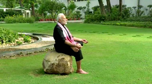 Modi, który jest aktywny w mediach społecznościowych, chętnie publikuje na swoich profilach posty i filmy, promujące jogę. Pokazuje również swoją praktykę. W ub.r. podjął popularne wśród hinduskich celebrytów wyzwanie #FitnessChallenge. Zademonstrował, jak wyglądają jego poranki w ogrodzie rezydencji prezydenckiej w New Delhi. Modi wykonuje ćwiczenia rozciągające i oddechowe. Spaceruje też po ułożonym wokół wielkiego drzewa specjalnym kole, w którym każdy element symbolizuje pięć żywiołów ajurwedyjskich - Ziemię, wodę, ogień, powietrze i eter. Pod koniec prawie dwuminutowego filmu widać, jak Modi przyjmuje medytacyjną pozę.https://www.youtube.com/watch?v=_VMHQgr1WXE