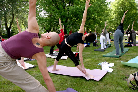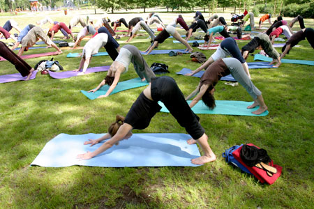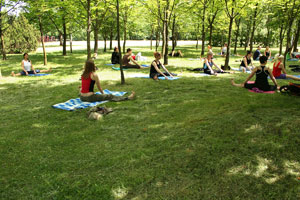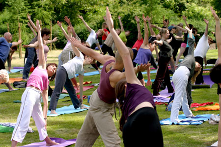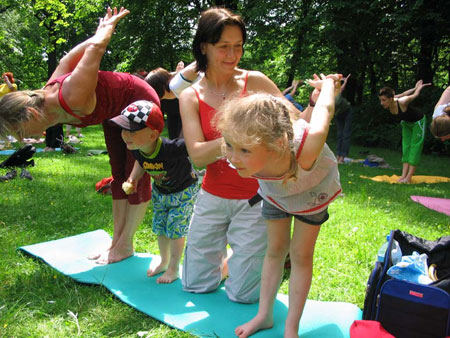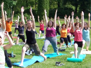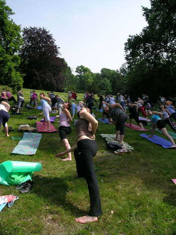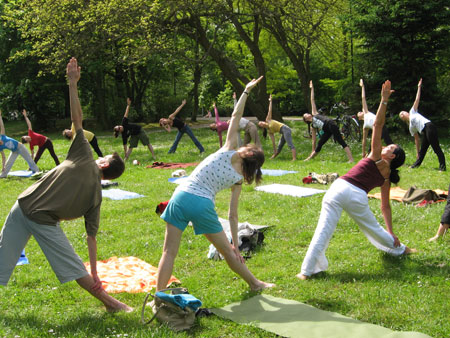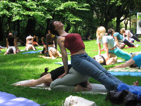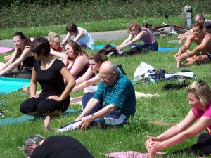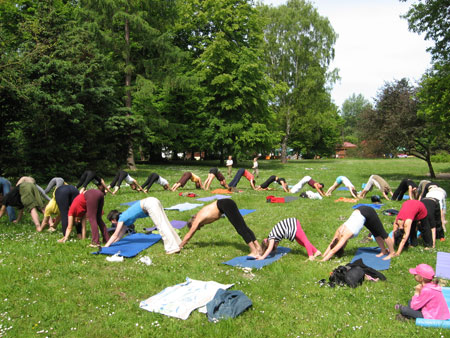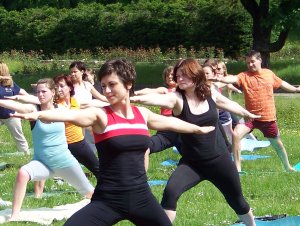 Wrocław, Park SzczytnickiW ostatnią majową sobotę na jogę do parku Szczytnickiego przybyło około 70-ciu osób, w tym ponad 20 rozpoczynających swoją przygodę z jogą. Wykonaliśmy kilka pozycji stojących szczególnie uwzględniając pracę z barkami.