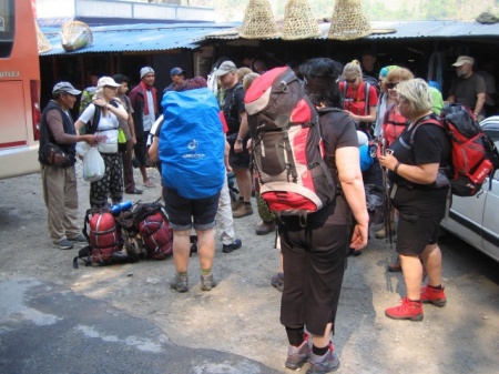 Z samego rana startujemy autobusem do Nayapul. Nasza 26 osobowa grupa przepakowana w małe plecaczki, jedzie z nami 3 Nepalczyków. Punkt startowy nie zmienił się zbytnio, ale na dole wsi droga, którą w tumanach kurzu, mijają nas jeepy i autobusy- tego kiedyś nie było. Wędrujemy rozjeżdżoną przez samochody, pełną drobnego pyłu drogą - trochę słabo. Spotykamy pięcioosobową grupę Polaków idącą do ABC ( Annapurna Base Camp). Jeden Polak= Jeden Nepalczyk do obsługi.Po ledwie 3 godzinach docieramy do naszej uroczo zlokalizowanej lodży. Pełen relaks.