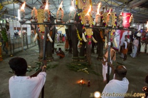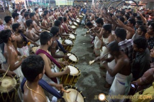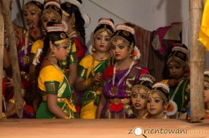 Po tym jak procesja dobiegła końca, na dwóch, obleganych przez widzów, scenach odgrywane było kathakali oraz tradycyjne tańce, m.in. bharatanatjam i mohanijatam. Nie byli to zawodowi artyści lecz dzieciaki, dla których było to zapewne jedno z ważniejszych wydarzeń w ich życiu. Jednak dla mnie największe wrażeni zrobiła muzyka. Muzycy wznieśli się na wyżyny swoich umiejętności odgrywając tradycyjne pańćari melam, trwające dwie i pół godziny. Pomimo wysokiej temperatury naprawdę dali z siebie wszystko, wprawiając wszystkich dookoła w niemalże transowy nastrój. Stojąc tam i wytupując rytm, razem z otaczającym muzyków tłumkiem zastanawiałem się jak długo hindusi zachowają w sobie tę spontaniczność i ten rys charakteru, rys kultury, które pozwalają im, z jednej strony, podążać za perfekcyjnie wyuczonymi rytmami, a z drugiej, na pełen pasji i swobodnej interpretacji show. Nie jest to jednak show pod publikę, nie jest to show, które oczekuje oklasków. Jest to robienie swojej roboty najlepiej jak się potrafi i nieoczekiwanie niczego w zamian. Bo taka jest ich rola, do tego się zobowiązali, odgrywają swoją powinność, twórczo odtwarzając boską (bo przeznaczoną boskiej sferze) muzykę, która przez ten moment jest nimi a oni są nią. I tu nie trzeba oklasków, bo nie potrzeba oklasków dla czegoś co po prostu jest i powinno być.