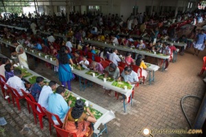 Naprawdę duże wrażenie zrobiła na mnie wielka świąteczna fiesta. W czasie południowego posiłku organizowanego przez świątynię wzięło w niej udział ponad 10 tysięcy ludzi. Dzięki darowiznom od prywatnych osób oraz różnych instytucji udaje się co roku organizować wielkie wspólnotowe wydarzenie, otwarte na wszystkich, również ludzi innych wyznań. Na długich stołach ochotnicy rozkładają liście bananowca, na które nakłada się, jeśli dobrze policzyłem, dwanaście różnych potraw a na końcu deser. Część z nich jest przygotowywana tylko na Onam, jak chociażby suszone banany z przyprawami czy payasam, na bazie mleka i migdałów. Przed świątynią ustawia się wielka kolejka chętnych na taką ucztę. Po tym jak kilkaset osób skończy swój posiłek, stoły są sprzątane, na nowo zastawiane i wpuszczana jest kolejna partia chętnych. Wszystkie osoby pracujące w kuchni, przy stołach i organizujące to wydarzenie robią to charytatywnie. To naprawdę miły obyczaj.