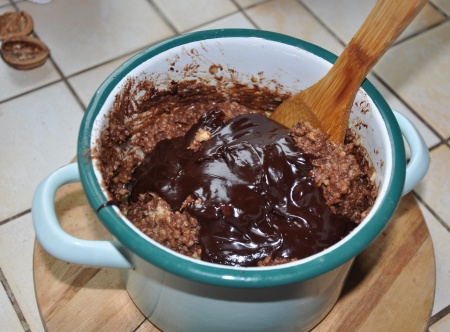 Pozostałą część czekolady posiekaj na drobne kawałki i dodaj do ostudzonej już masy.