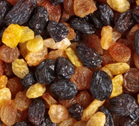 To ususzone na słońcu specjalne bezpestkowe gatunki winogron. Jest ich wiele odmian m.in. duże jasne sułtanki, małe ciemne koryntki, największe - królewskie. Zależnie od odmiany zawierają 55-70 proc. cukru (głównie glukozy i fruktozy), witaminy E i z grupy B, potas, fosfor i żelazo. Obniżają poziom złego cholesterolu, poprawiają pracę serca, obniżając ciśnienie krwi (potas), zapobiegają osteoporozie, a u panów rakowi prostaty. Duża ilość błonnika w połączeniu z kwasem winowym przyczyniają się do rozwoju w jelitach korzystnej flory bakteryjnej. W rodzynkach jest jod potrzebny do prawidłowej pracy tarczycy, a także bor, który korzystnie wpływa na pracę mózgu. Podobnie jak winogrona, zawierają resweratrol - przeciwutleniacz chroniący komórki przed uszkodzeniem (277 kcal/100 g).