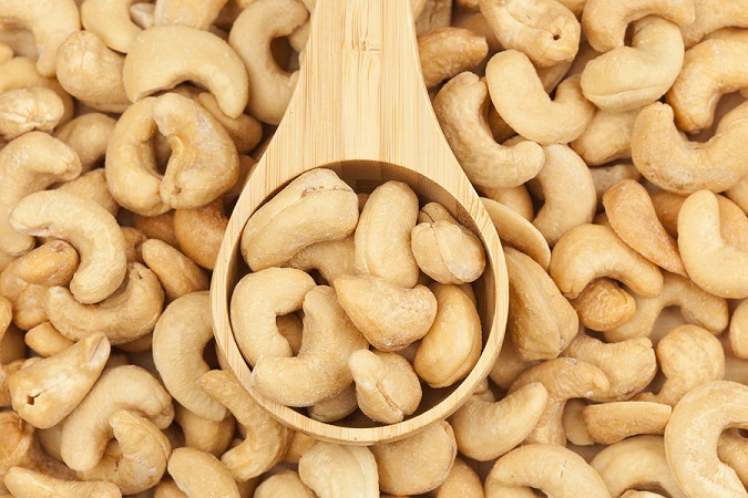Czyli orzechy nanerczowe. Są owocem nerkowca drzewa pochodzącego z Ameryki Południowej. Mają kształt nerki, są dość miękkie i słodkie w smaku. Zawierają sporo białka (ale mniej niż fistaszki), są bogate w żelazo, magnez i witaminę A. Podobnie jak fistaszki, służą do wyrobu masła orzechowego (566 kcal/100 g).