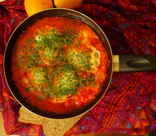 Shakshuka, czyli jajka zasmażane na pomidorach