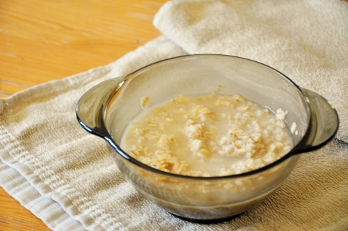 Wsyp płatki do miseczki, w której będzie wystarczająco przestrzeni dla Twoich dłoni. Zalej wrzątkiem w proporcji 1:3, aby konsystencja po wsiąknięciu w płatki, była rzadka i pozostaw na około 15 min. Kiedy temperatura będzie optymalna dla Twoich dłoni, dodaj kapkę oleju lnianego i wymieszaj. Dłonie trzymaj w miseczce z "owsianką" min. 10 min., aby skóra mogła zaabsorbować w cieple jak najwięcej cennych składników. Po "zabiegu", dla wzmocnienia efektu nawilż dłonie swoim ulubionym olejkiem.