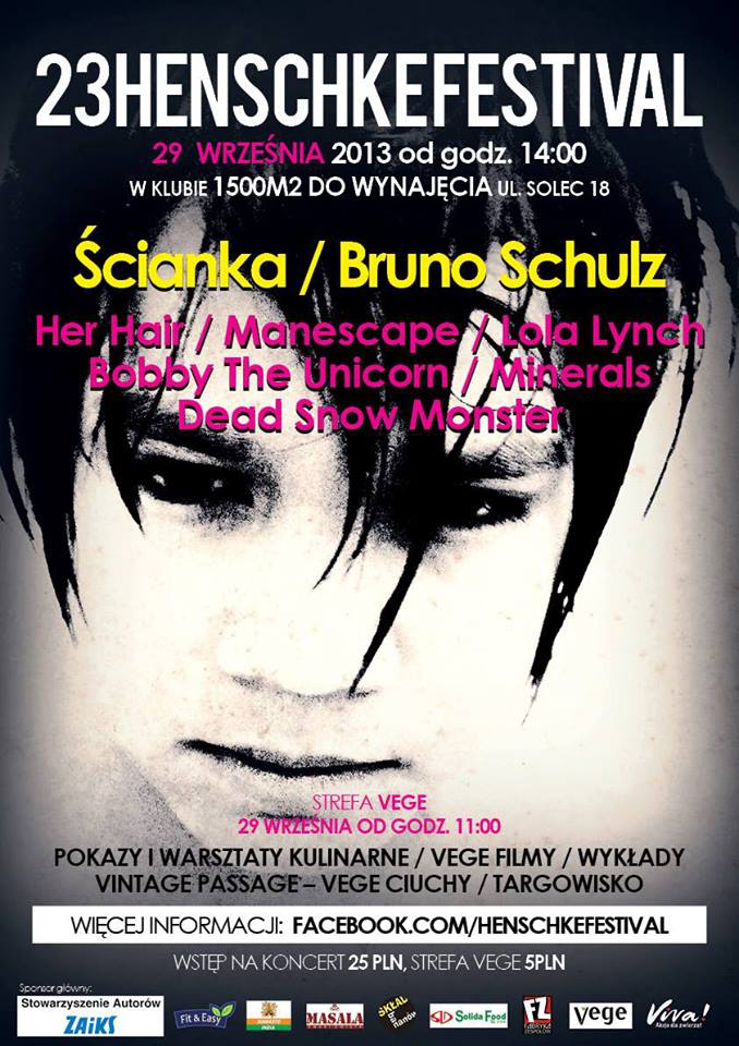 Gwiazdami festiwalu będą Ścianka i Bruno Schulz ale to nie znaczy że inne zespoły są mniej wartościowe, po prostu grają krócej i nie są jeszcze tak znane. Warto być na całym festiwalu i posłuchać także Hatifnats, Dead Snow Monster, Lola Lynch, Minerals, Her Hair czy Bobby The Unicorn. WZK: A część vege?