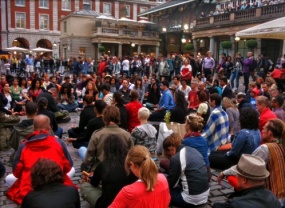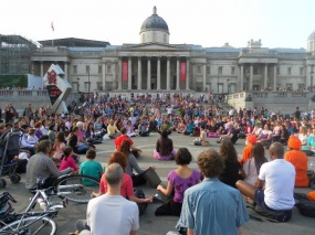 Medytacja w środku miasta? Na dachu galerii handlowej? W Tate Modern? Czemu nie. W Londynie spontanicznie skrzyknięta grupa medytacyjna praktykuje w różnych miejscach, również na Trafalgar Square czy na placu w pobliżu CoventGgarden.