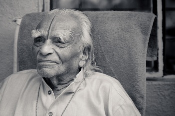 Dziś siedząc w ciszy, mój umysł wyświetla jego białe dhoti, które zakasuje do niezaplanowanych działań na klasie medycznej. Przywołuję poruszenie związane z ośmioletnią onegdaj, chorującą na polio Gaurika, na której ciele i duchu Iyengar dokonywał cudu - uwagi, oddania, odwagi.Przywołuję wygląd jego gładkiej, elastycznej skóry w SuptaPadangusthasanie bocznej, której młodość hipnotyzowała mój wzrok za każdym razem gdy tamtego dnia udawałam się po pomoce do praktyki własnej.