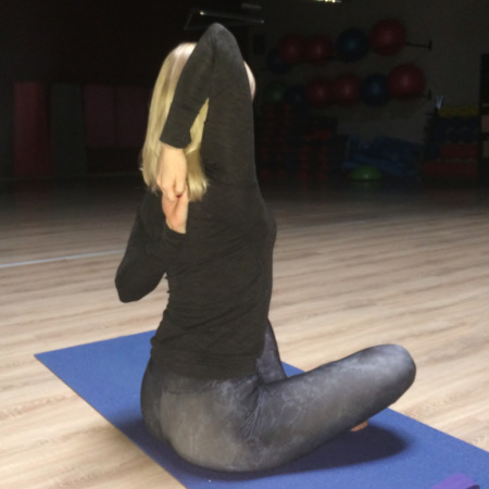 Jedną z łatwiejszych pozycji jogi, która świetnie będzie rozluźniała cały rejon barków to Gomukhasana.
