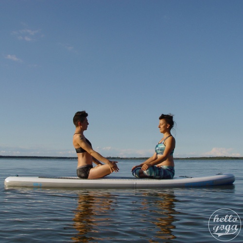 Po drugie, przyroda i medytacja. Jest w tym połączeniu coś, czego nie znajdziesz praktykując w żadnym zbudowanym przez człowieka wnętrzu. Kontakt z przyrodą, a co za tym idzie spokój i siła, dotlenienie organizmu, wakacyjną swobodę, rozluźnienie głowy, energię płynącą z kontaktu z Matką Naturą. Każde zajęcia na wodzie są niepowtarzalne i jedyne w swoim rodzaju, nie tylko ze względu na różnorodność sekwencji asan, ale też możliwość obserwacji otoczenia, cudownej zmienności krajobrazów i niepowtarzalnej scenerii. Każdego dnia niebo i woda są trochę inne, a postrzeganie i poddawanie się zmieniającym się warunkom otoczenia przynosi nieporównywalny z niczym spokój, przy okazji sprawiając, trochę po dziecięcemu, dużo frajdy.
