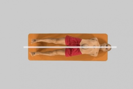 Ciało jest ustawione dokładnie w jednej linii, w osi maty.
